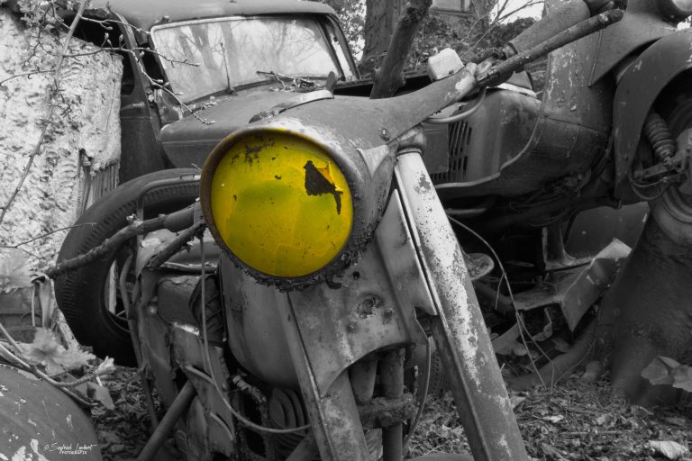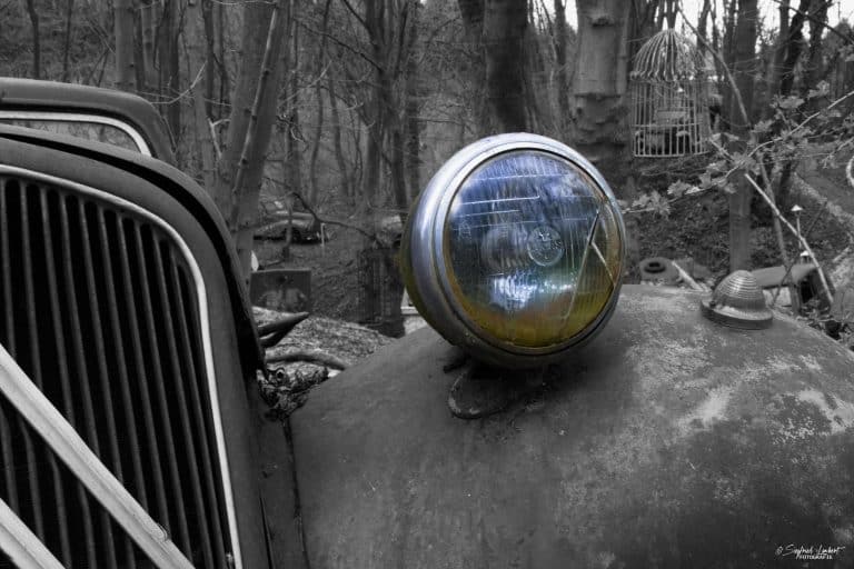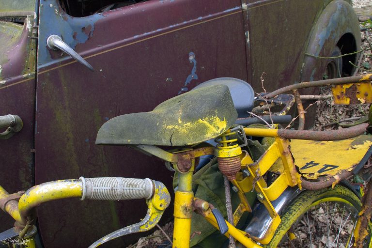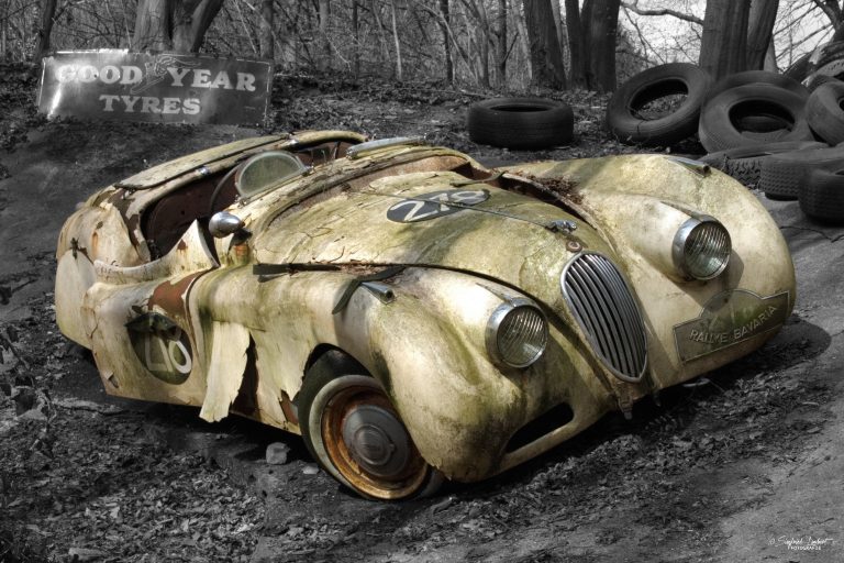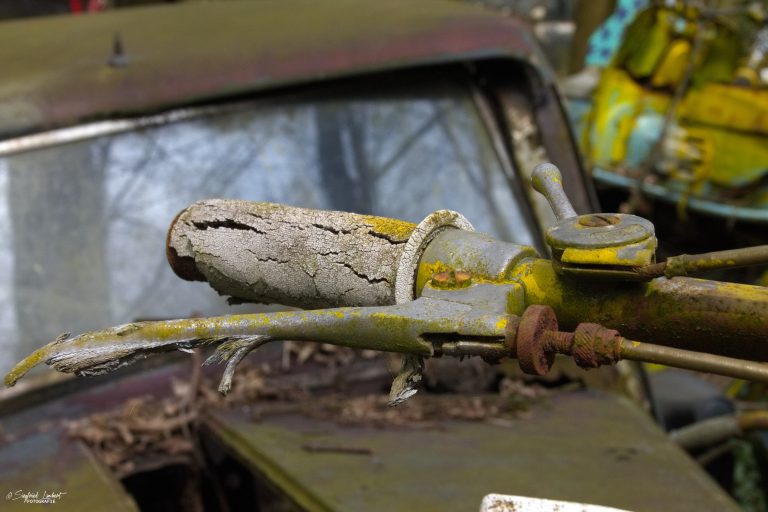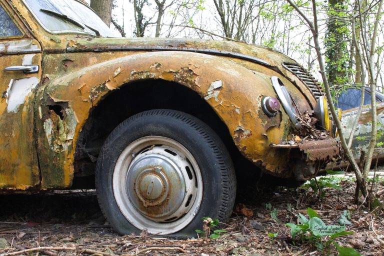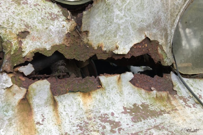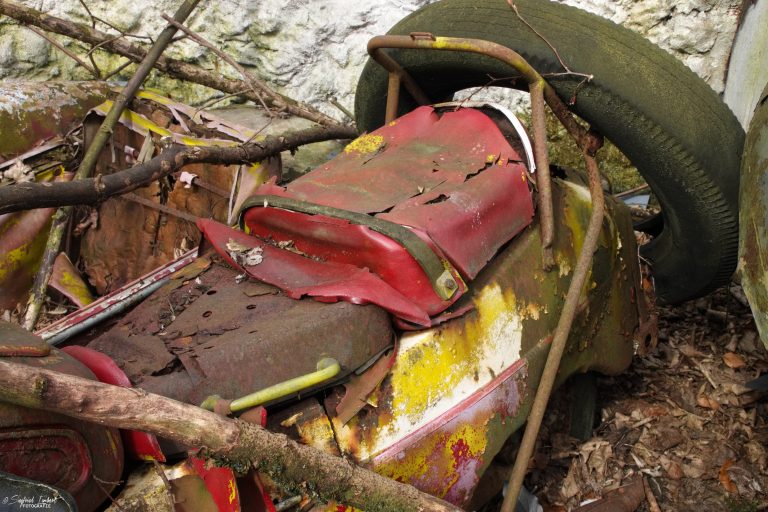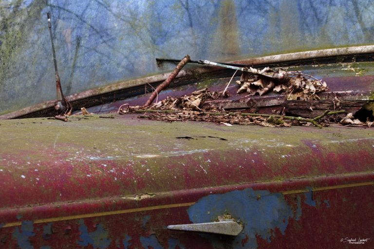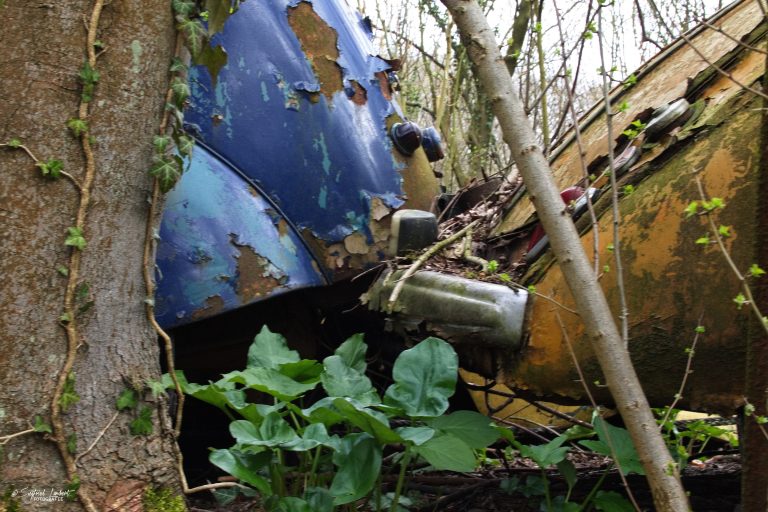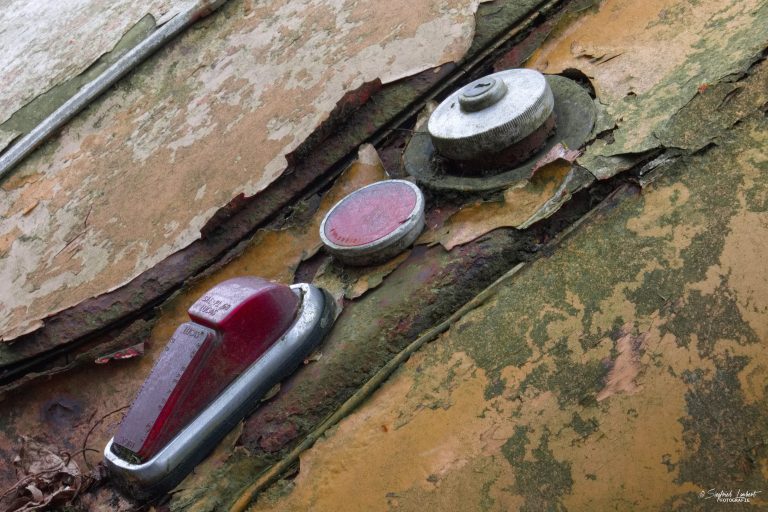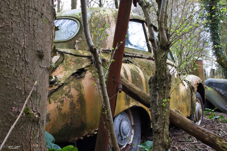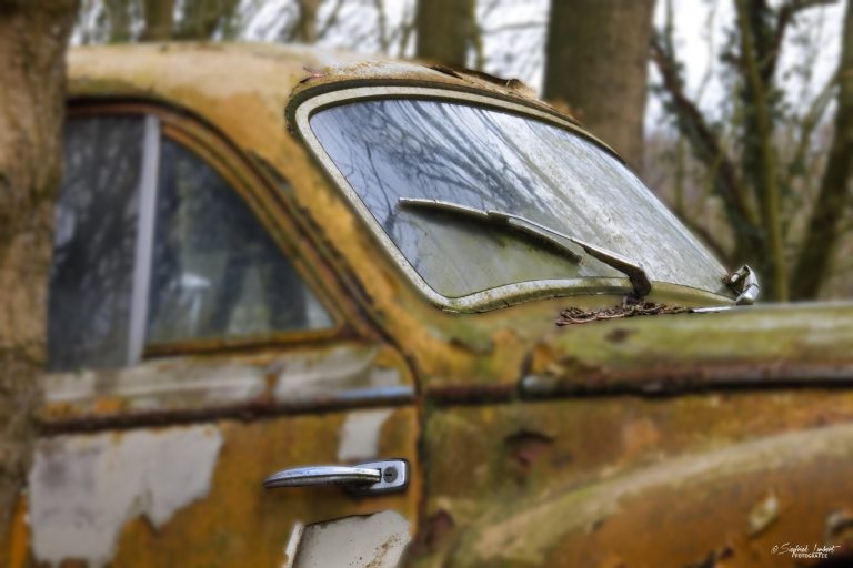 Schneckenhäuser sind in den Karosserieecken liegen geblieben und das Laub der vergangenen Jahre wirkt wie eine Naturpatina.