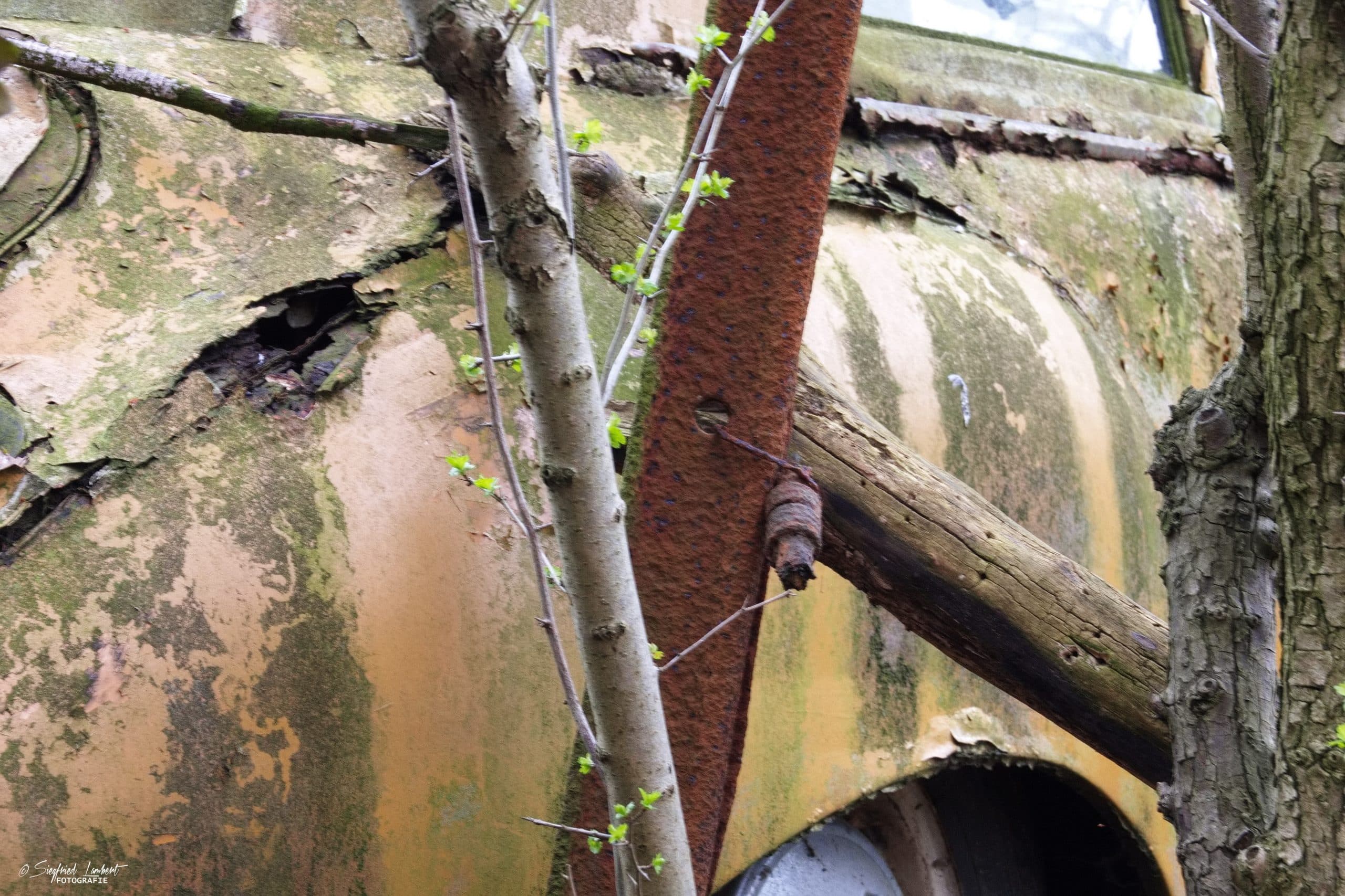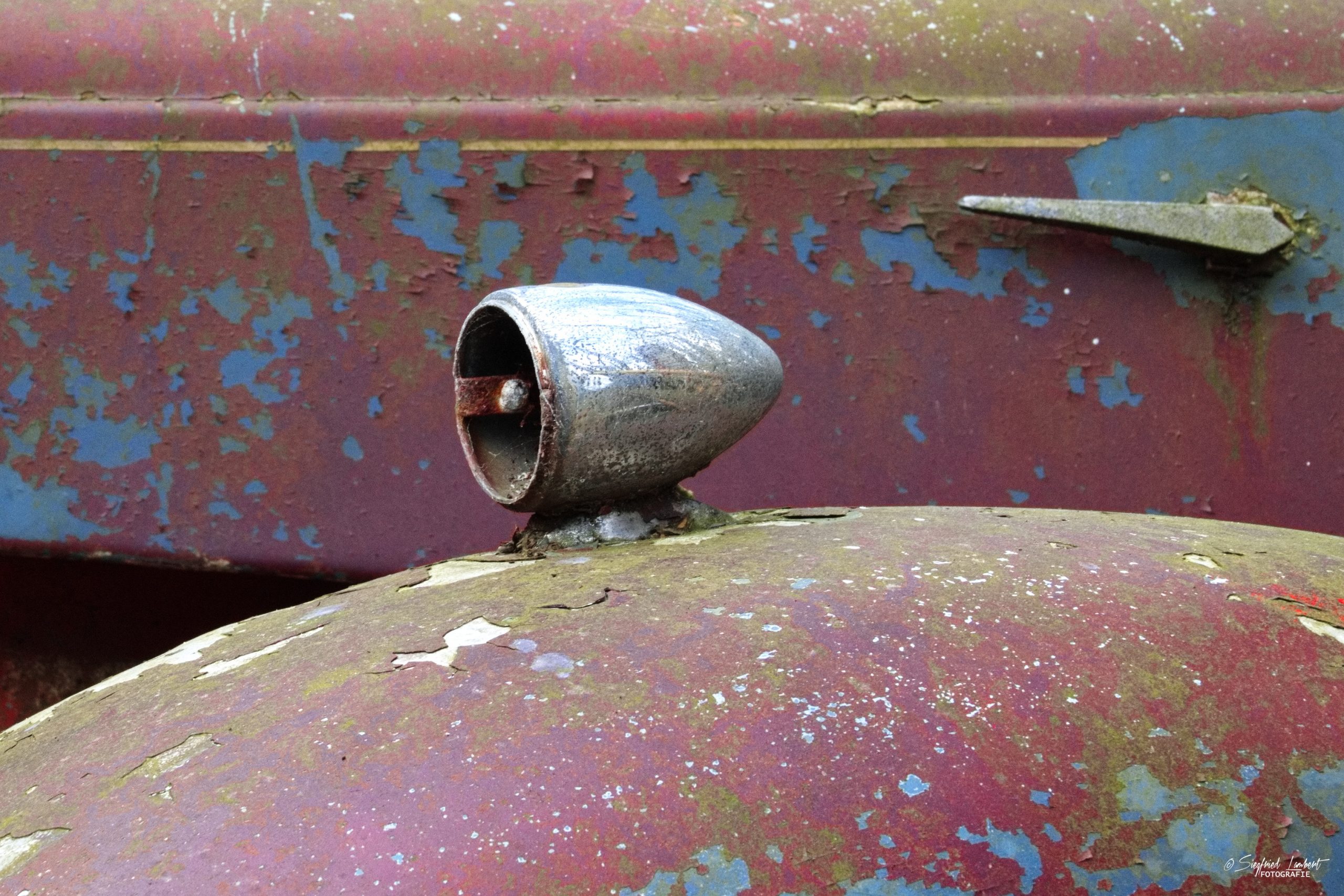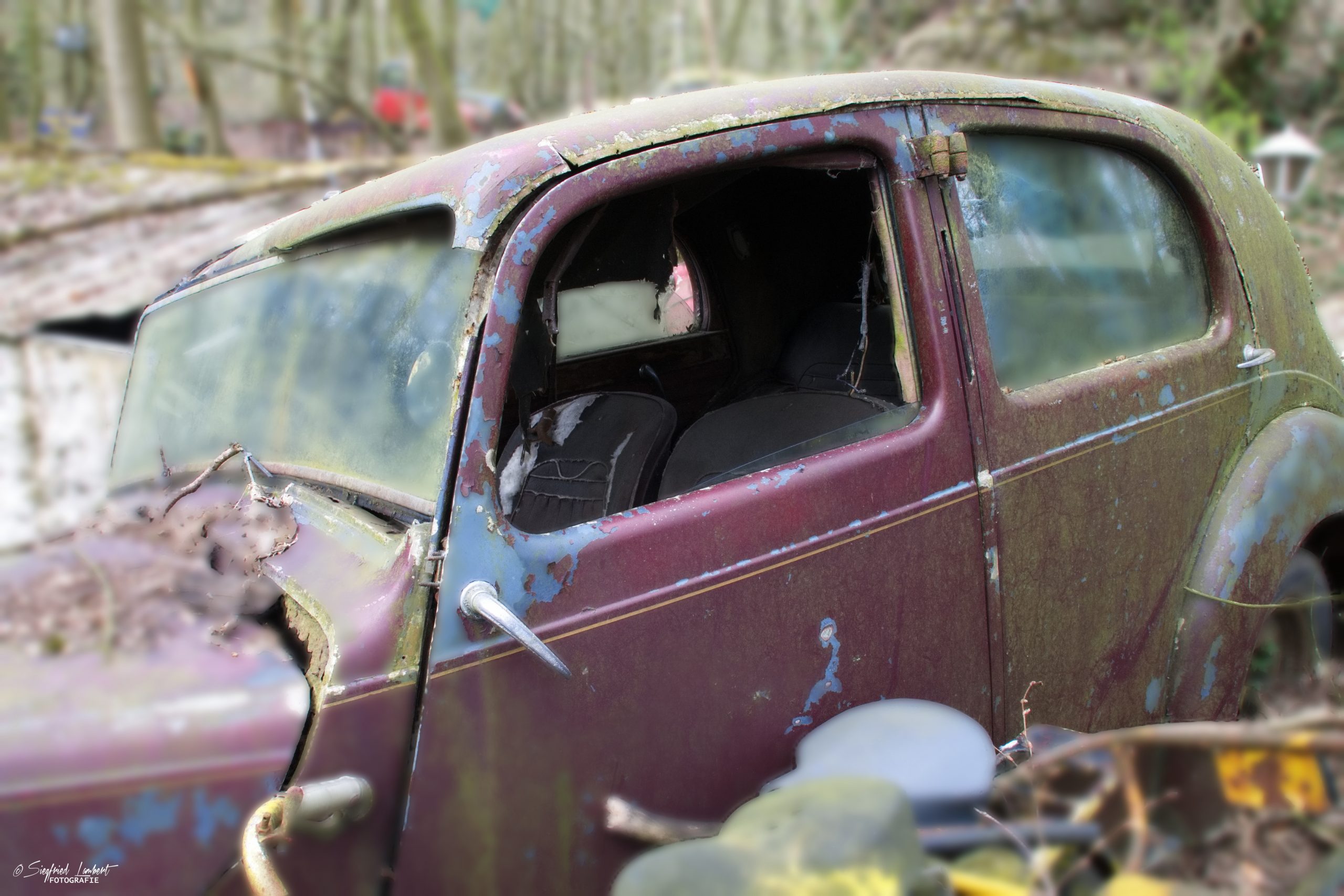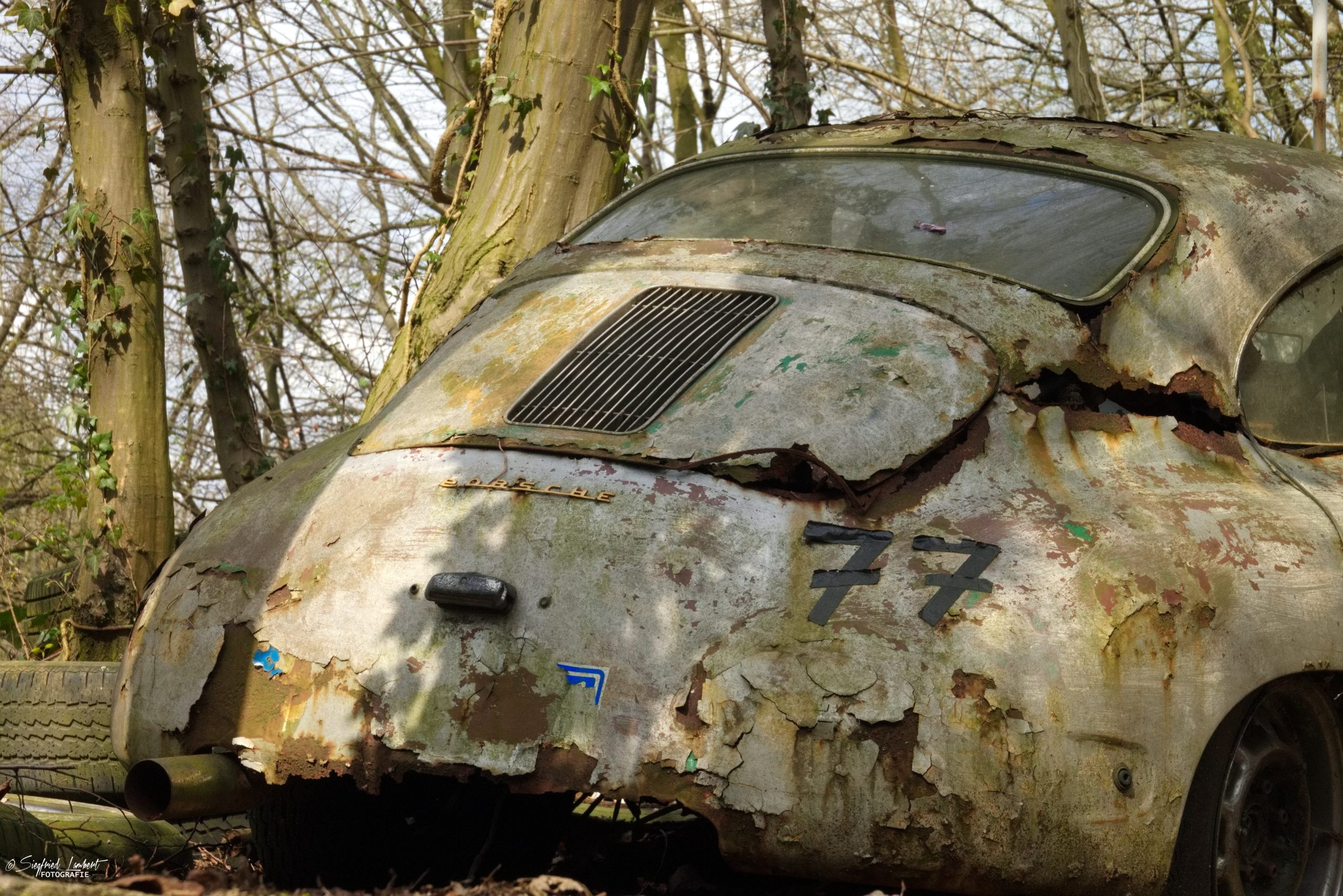 Schneckenhäuser sind in den Karosserieecken liegen geblieben und das Laub der vergangenen Jahre wirkt wie eine Naturpatina.