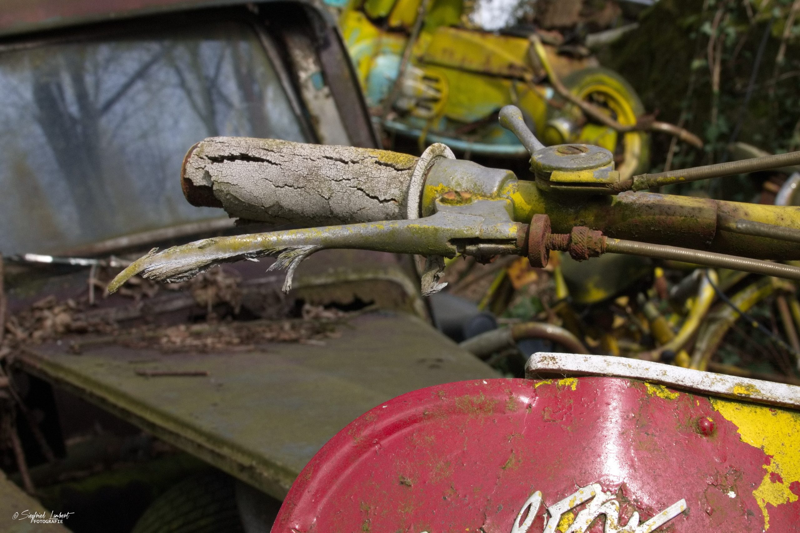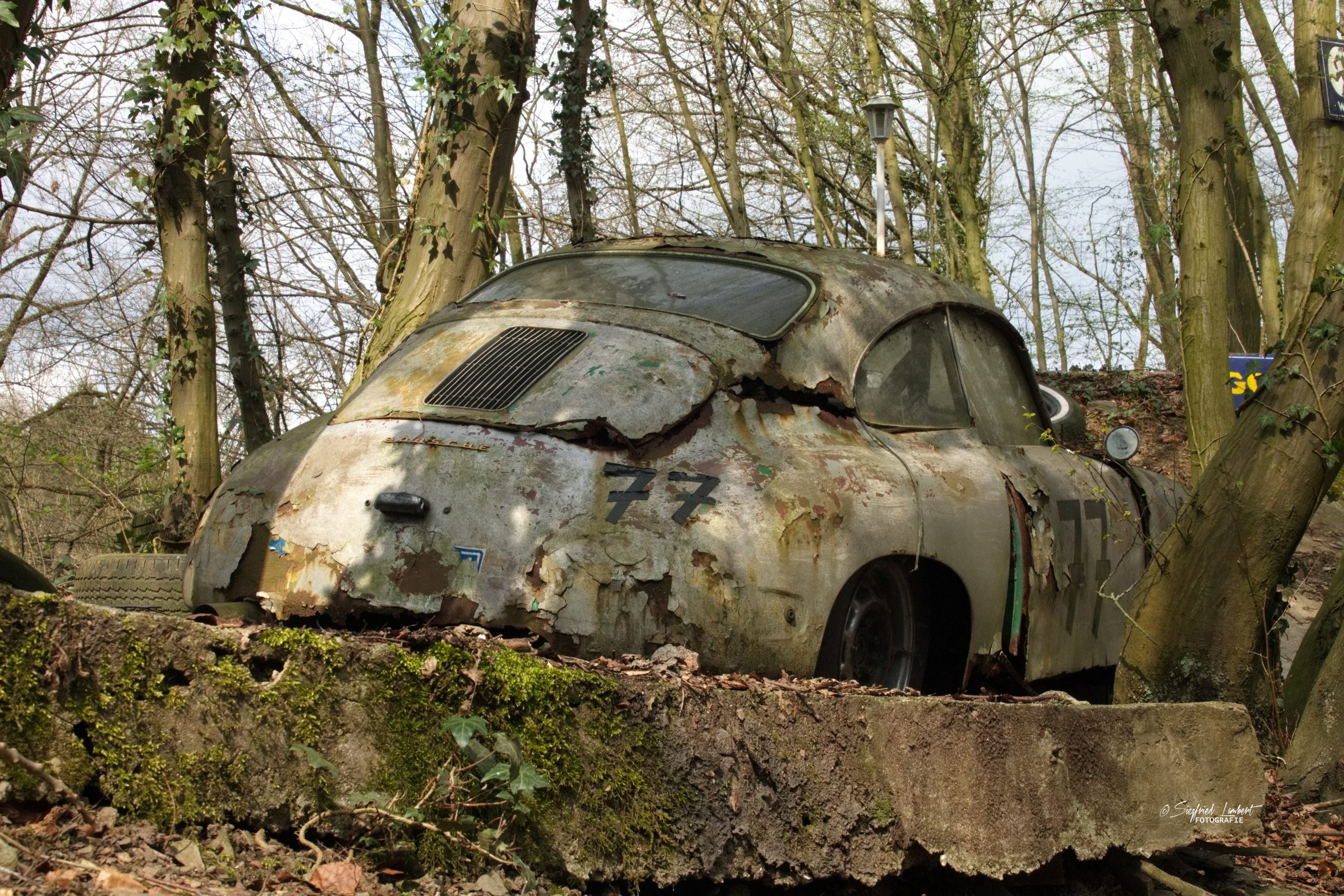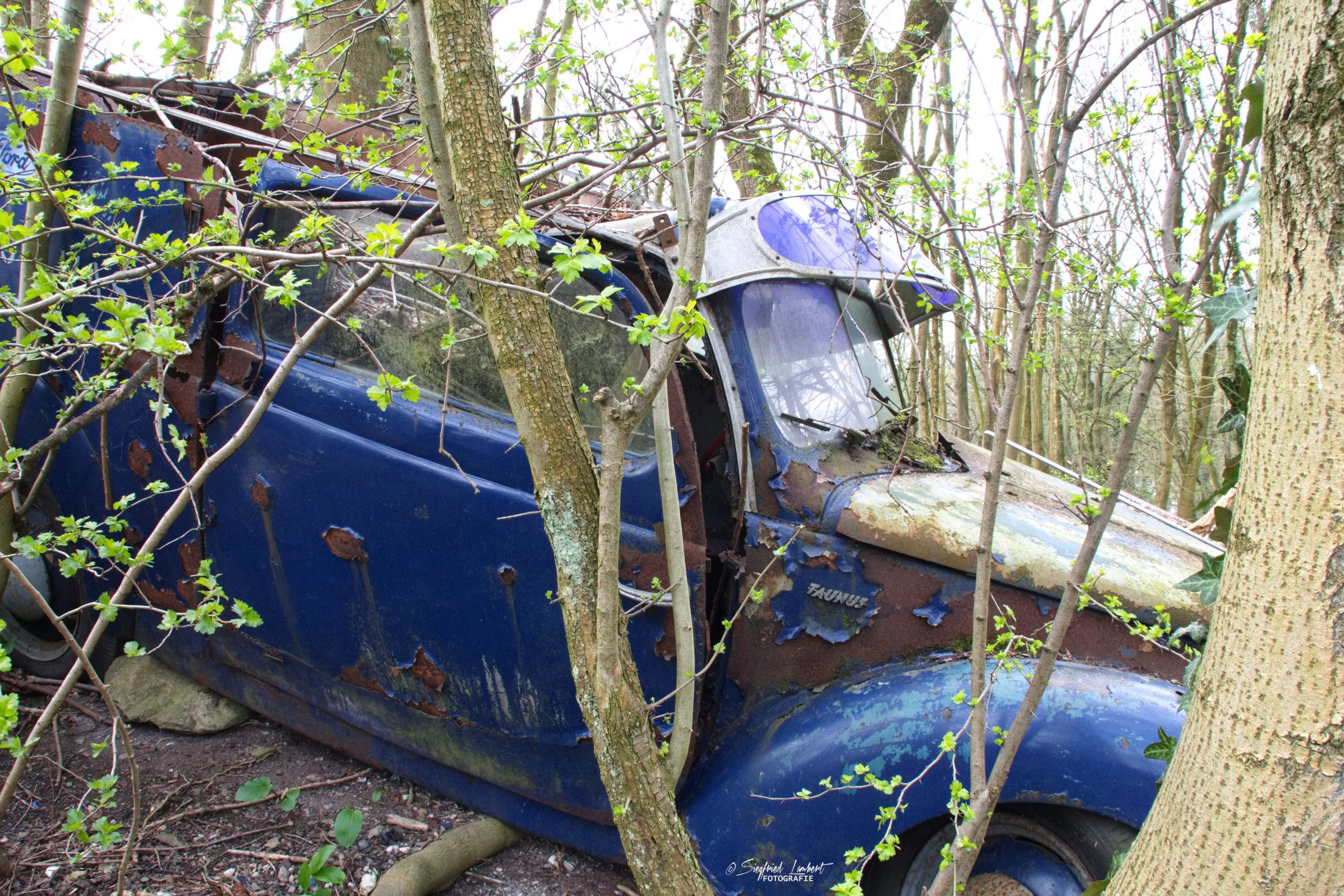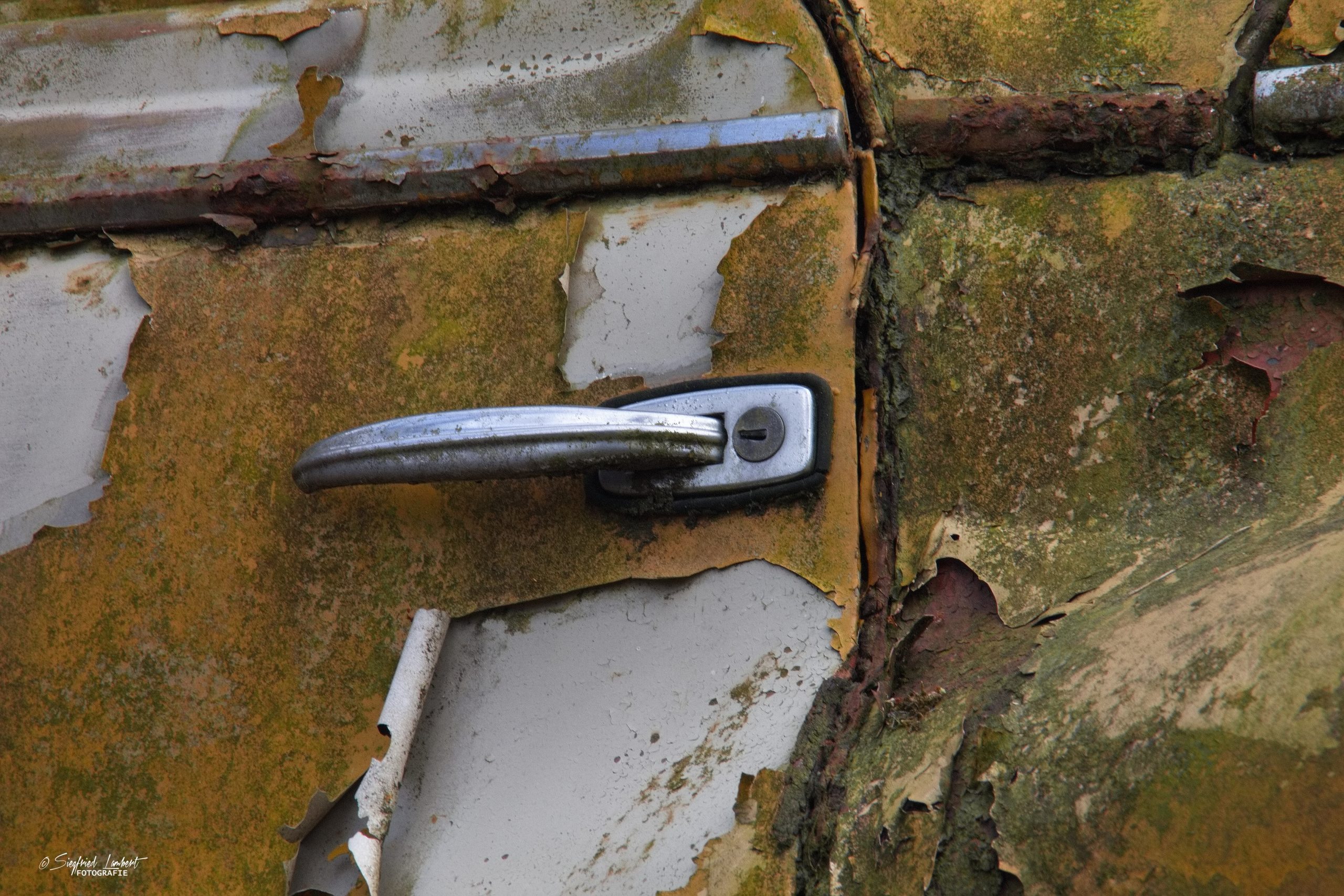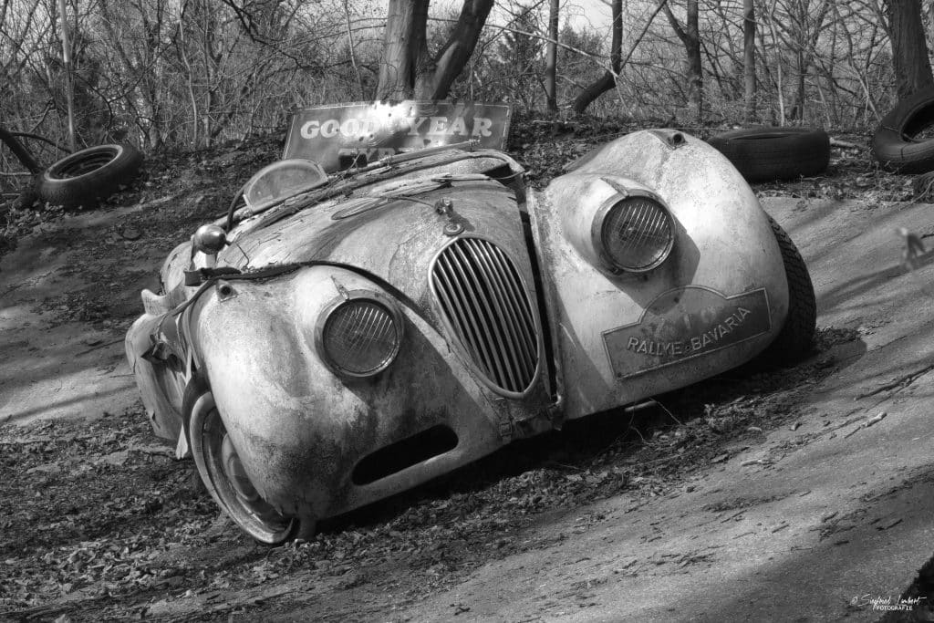 Schneckenhäuser sind in den Karosserieecken liegen geblieben und das Laub der vergangenen Jahre wirkt wie eine Naturpatina.
