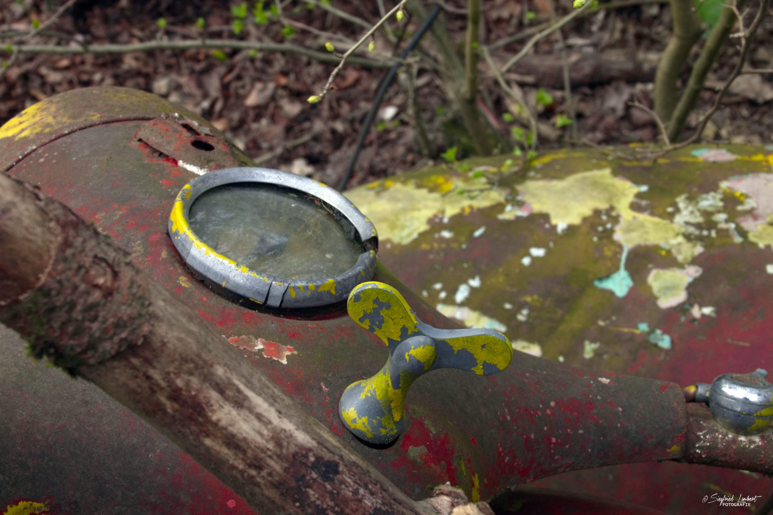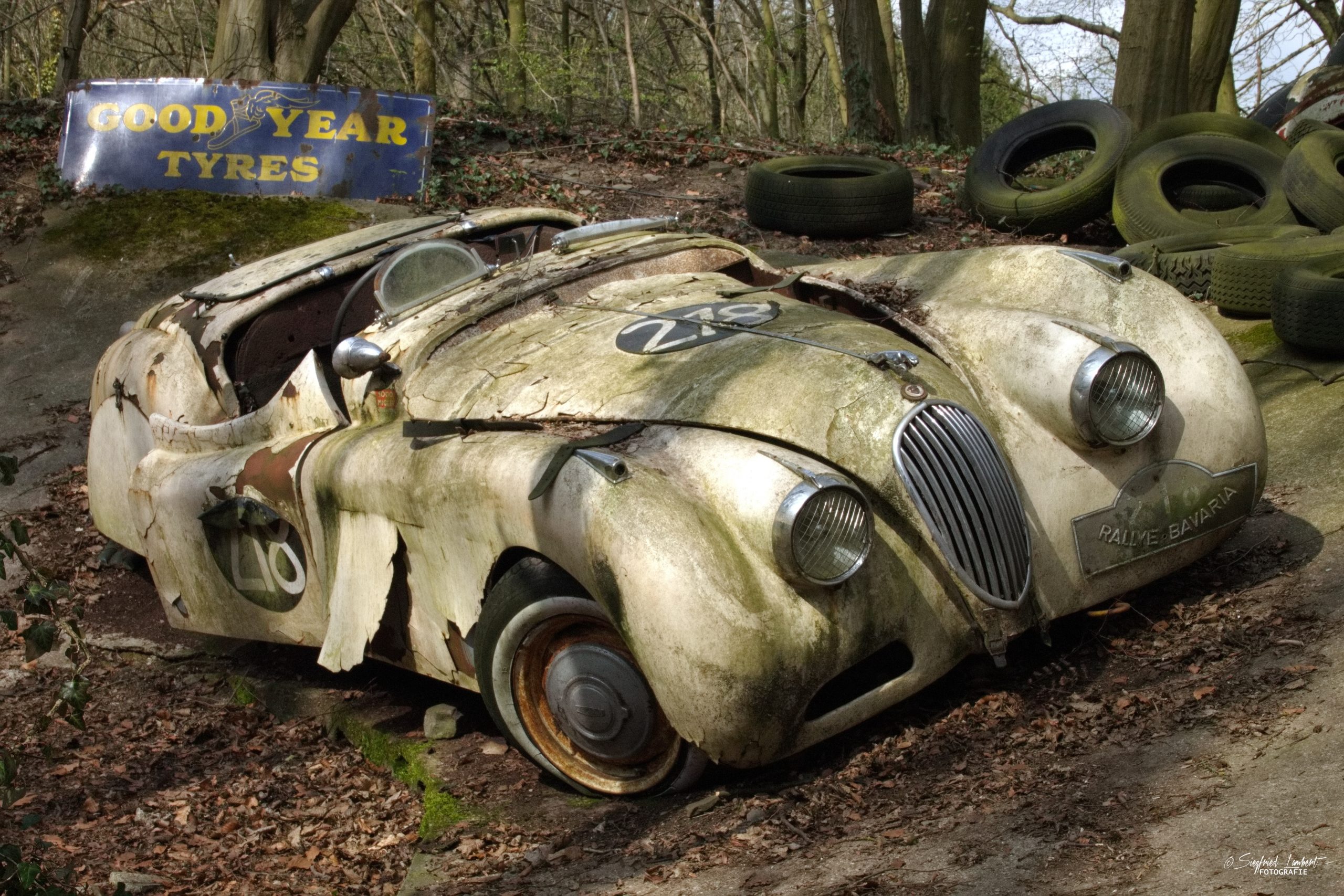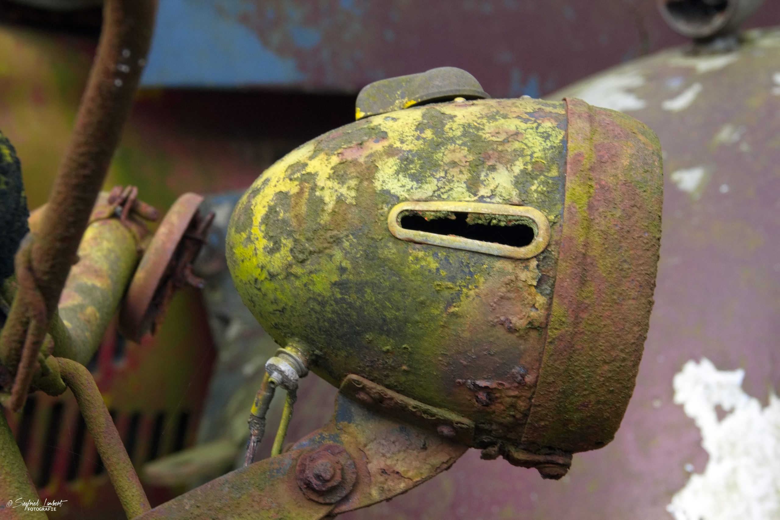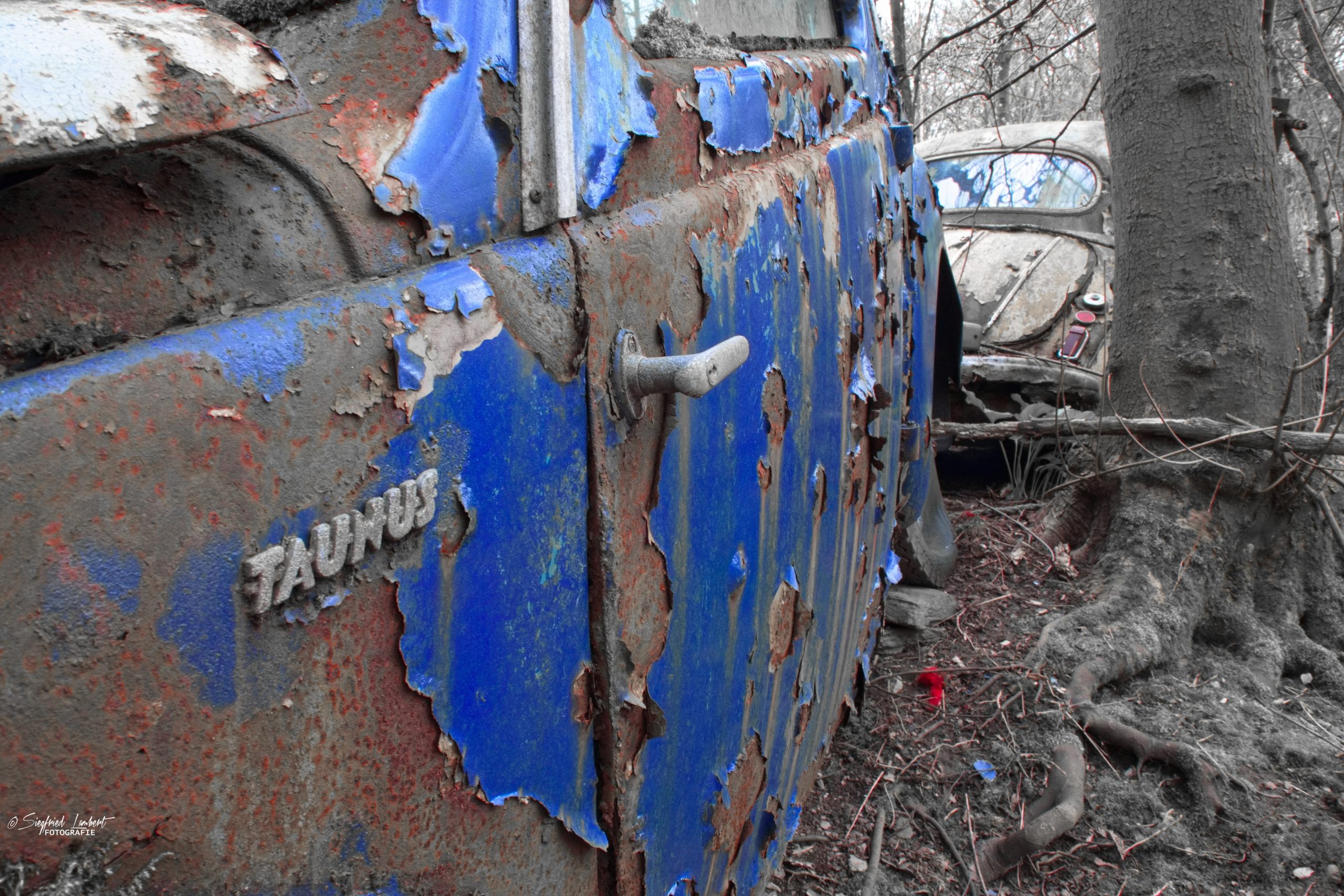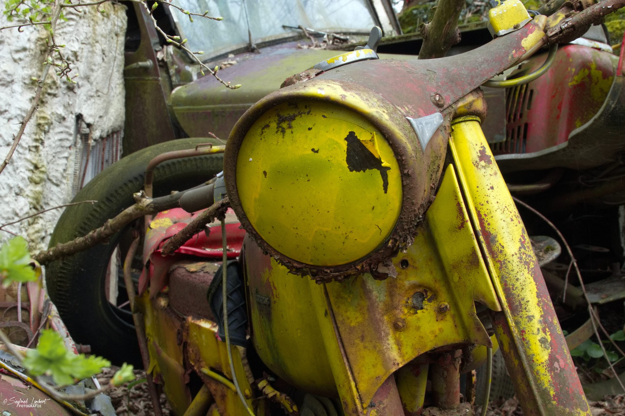 Schneckenhäuser sind in den Karosserieecken liegen geblieben und das Laub der vergangenen Jahre wirkt wie eine Naturpatina.