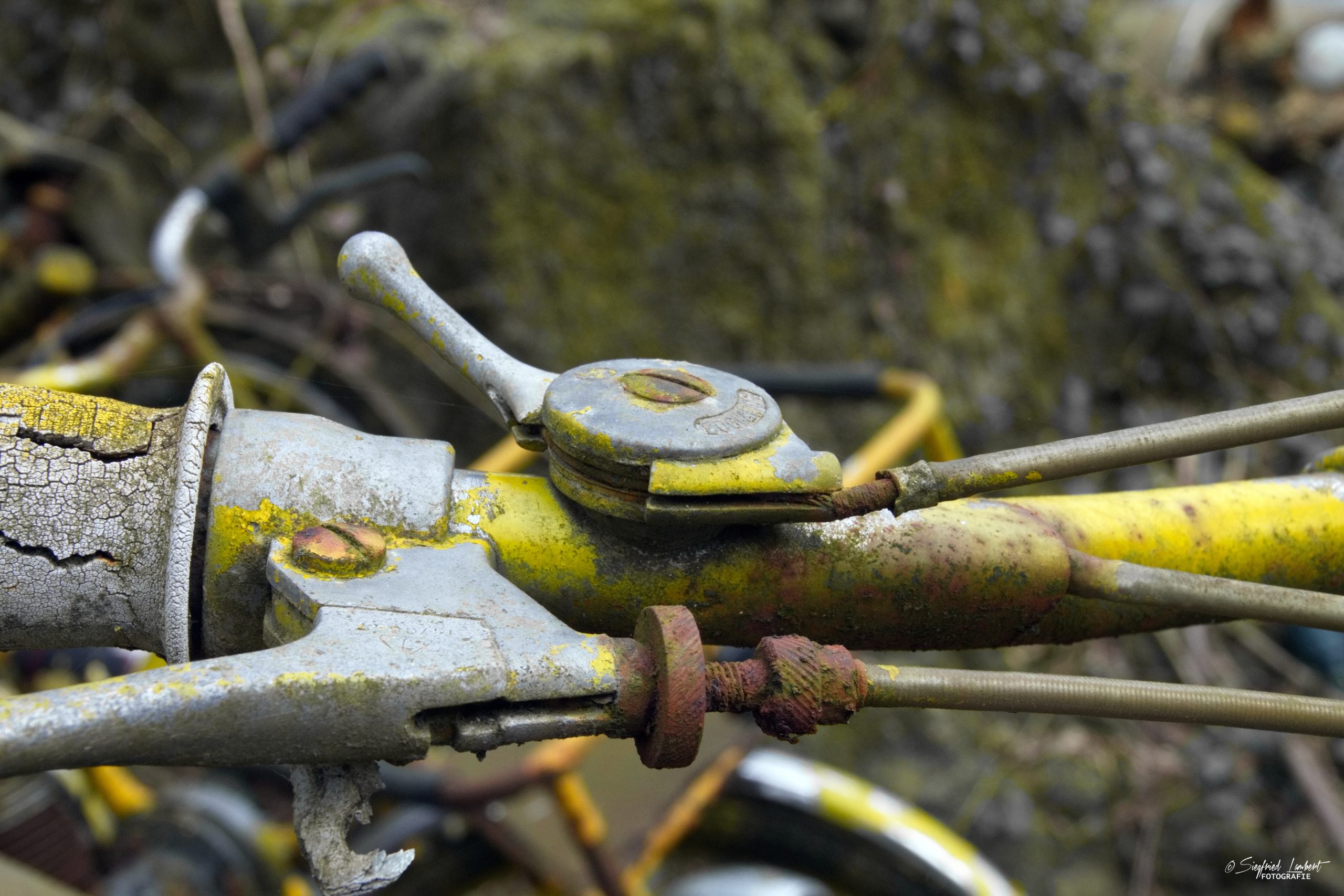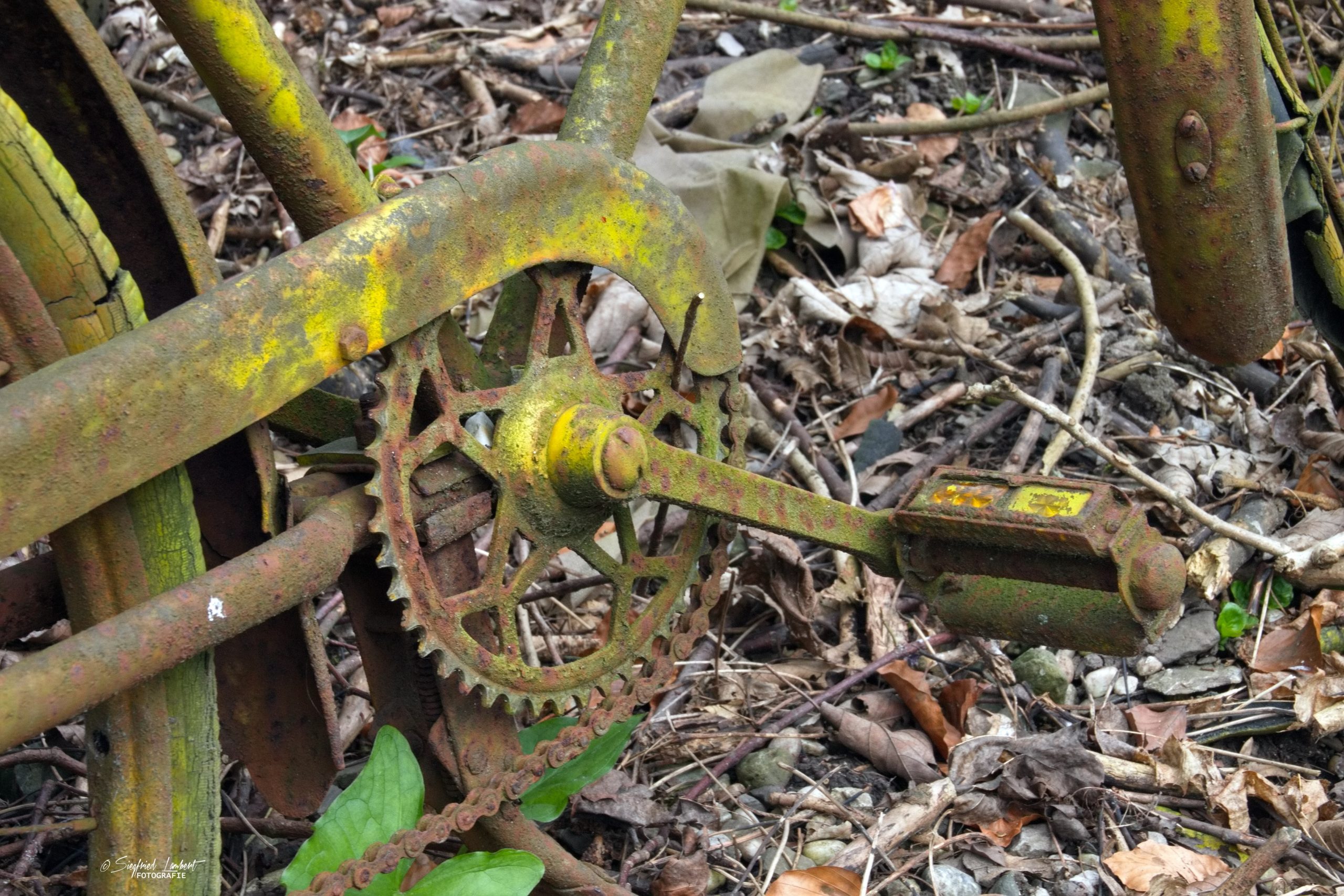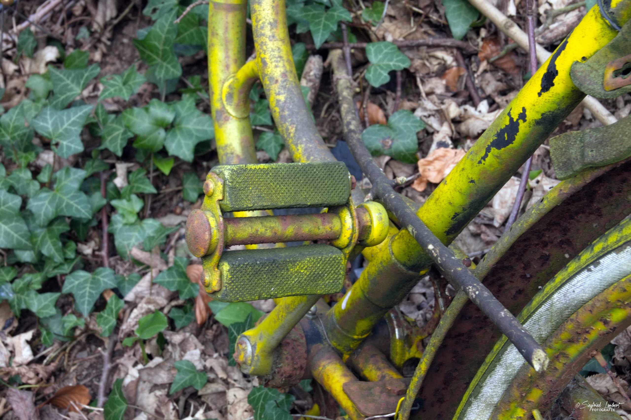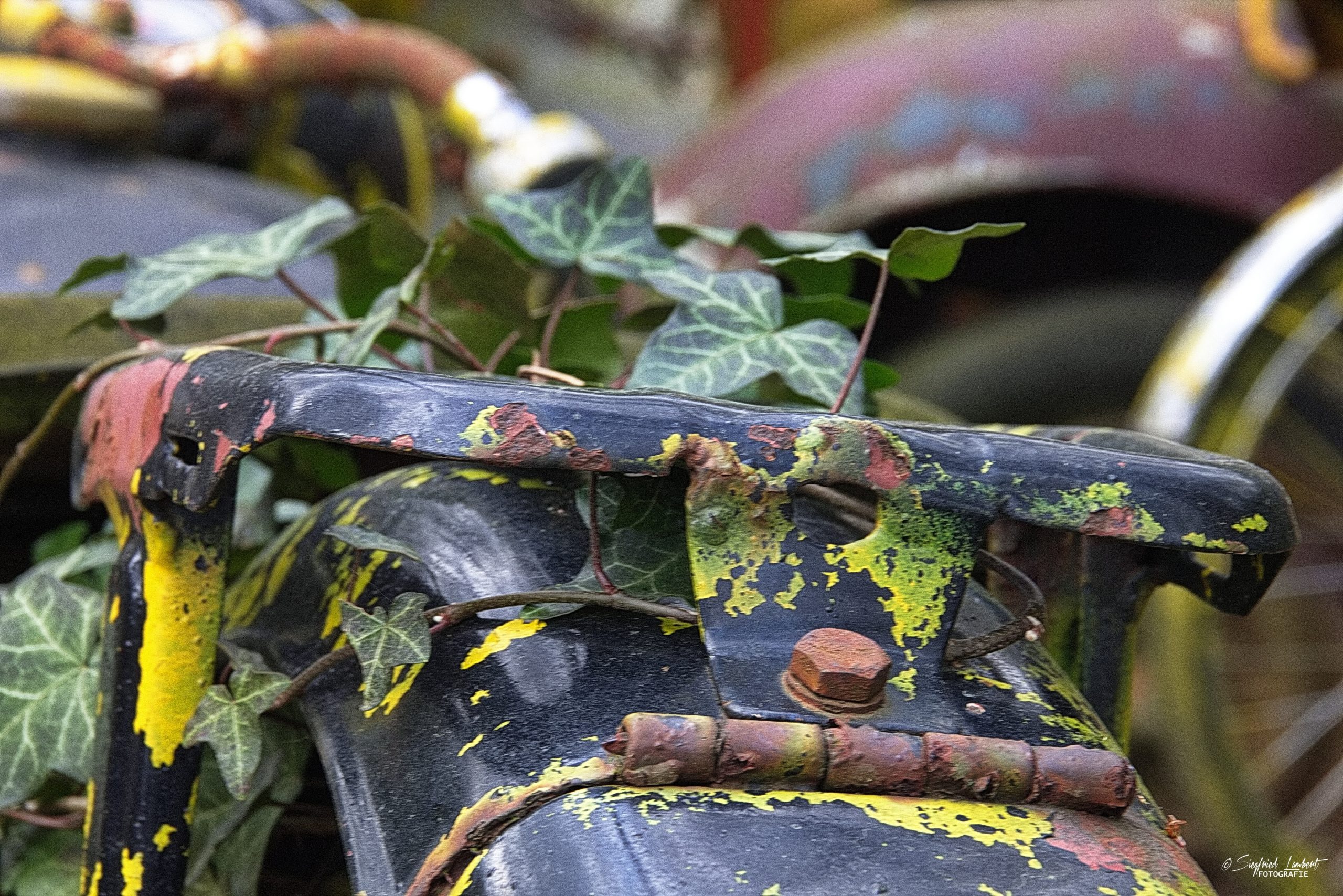 Schneckenhäuser sind in den Karosserieecken liegen geblieben und das Laub der vergangenen Jahre wirkt wie eine Naturpatina.